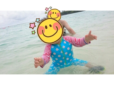 長袖の水着と帽子と日焼け止めとアクアシューズで完全防備の息子を連れて、